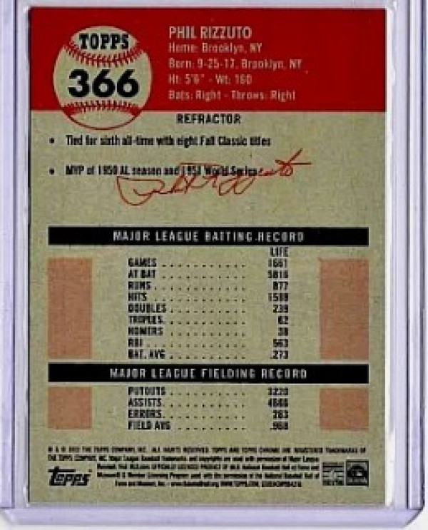 2022 Topps Chrome Platinum Anniversary Phil Rizzuto - Refractor #366