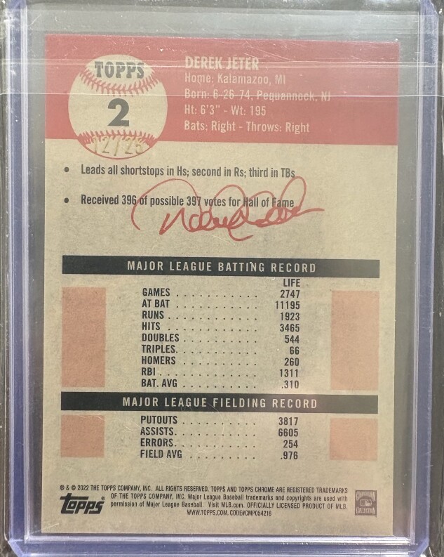 2022 Topps Chrome Platinum Derek Jeter #2 Orange Wave /25
