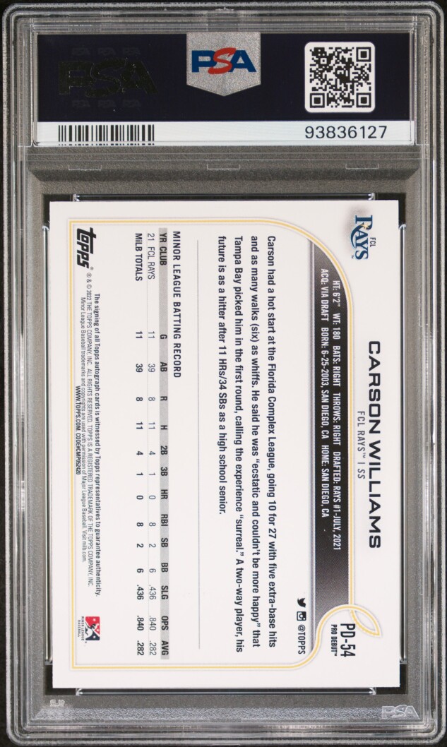 2022 Topps Pro Debut Carson Williams Auto PSA 10. Reach out with any questions!