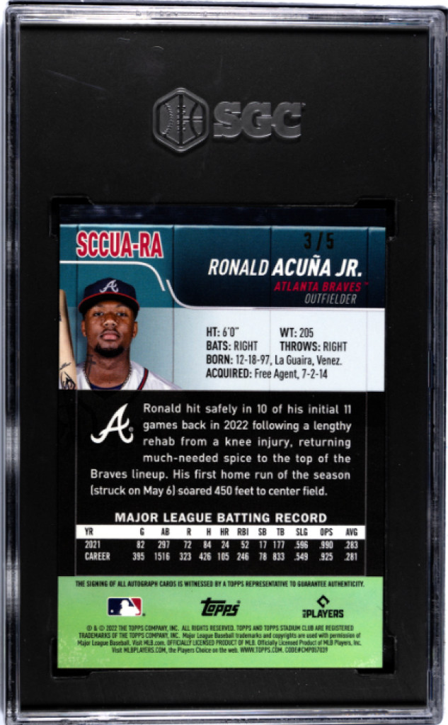 2022 Topps Stadium Club Chrome Ronald Acuna Jr. Shimmer /5 SGC 10