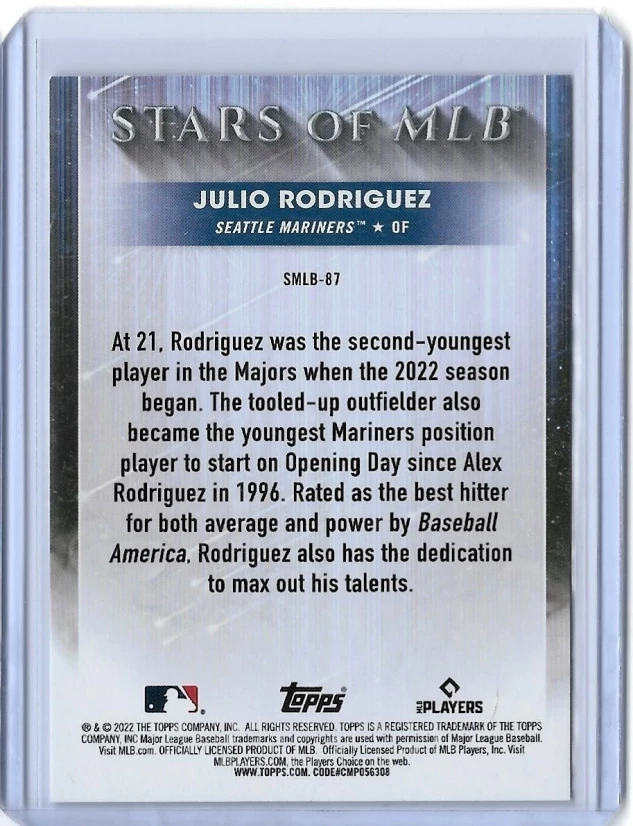 2022 Topps Update Julio Rodriguez Stars of MLB RC. None of the cards listed will grade well, meaning there's no psa 10s in the quantity available for sale.