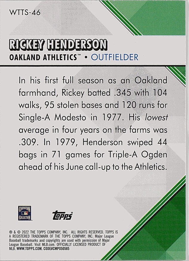 2022 Topps #WTTS-46 Rickey Henderson Welcome to the Show