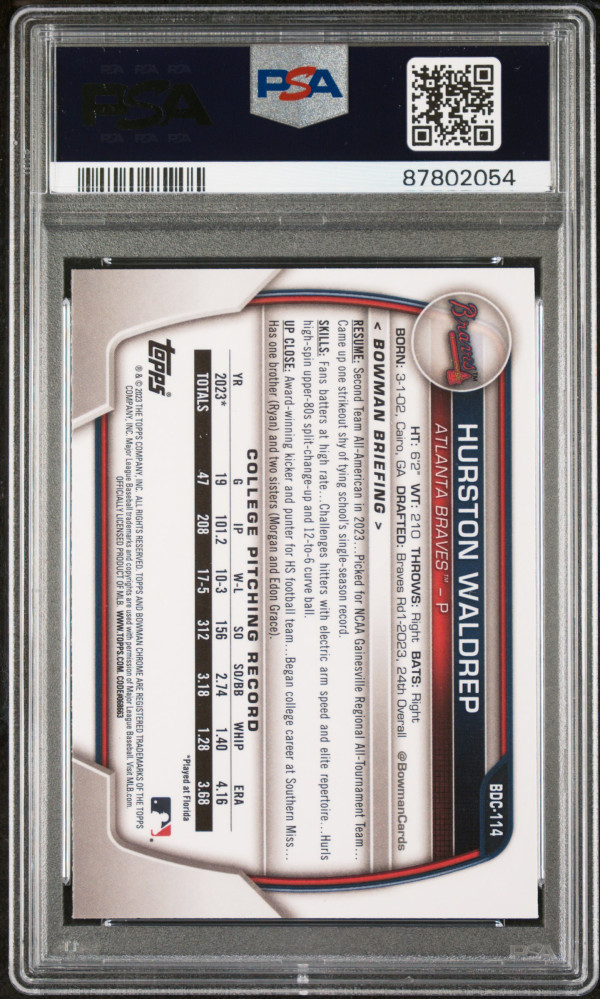 2023 Bowman Draft Hurston Waldrep #BDC114 Chrome PSA 9