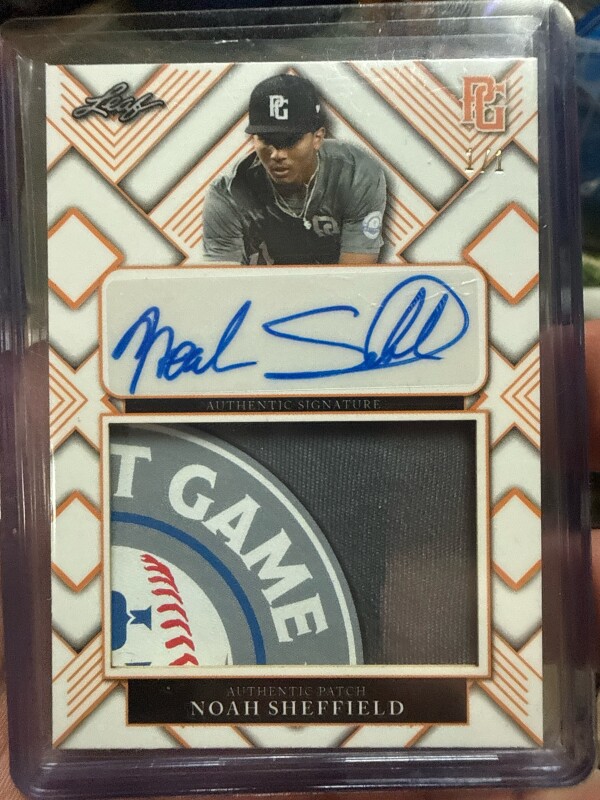 2023 Leaf Perfect Game National Showcase Game Used Jersey Patch Auto. This is Gary Sheffields son.