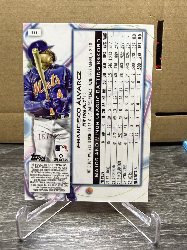 2023 Topps Chrome Cosmic Francisco Alvarez Rookie Green Space Dust /75 RC #179. Card is sold as is.