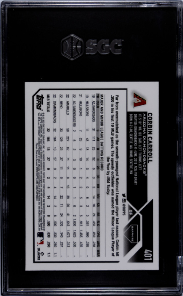 2023 Topps Chrome Sapphire Corbin Carroll SGC 10