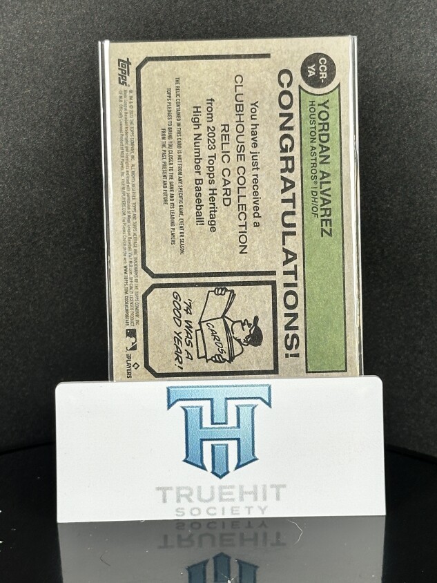 You are purchasing a 2023 Topps Heritage Clubhouse Collection Yordan Alvarez #CCR-YA. You will receive the exact item in the photographs. Thank you for looking.