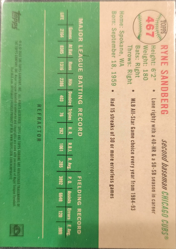 2023 Topps Platinum Ryne Sandberg Refractor