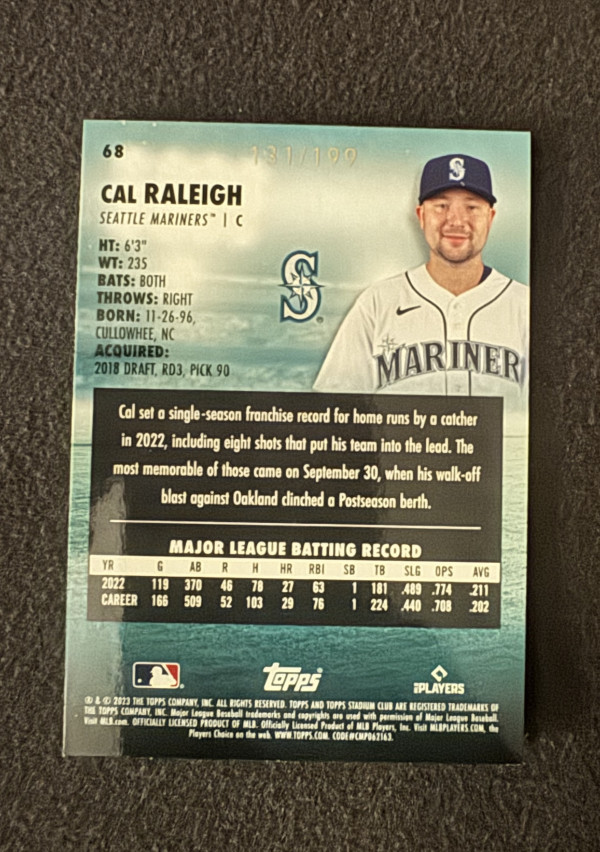 2023 TOPPS Stadium Club Cal Raleigh Orange Foil