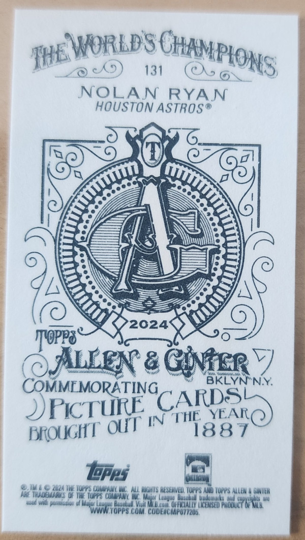 2024 Allen And Ginter Nolan Ryan Mini Allen & Ginter Back