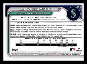 You are purchasing a 2024 Bowman Ben Williamson #BP-67 1st Bowman. You will receive the exact item in the photograph/scan. Thank you for looking.