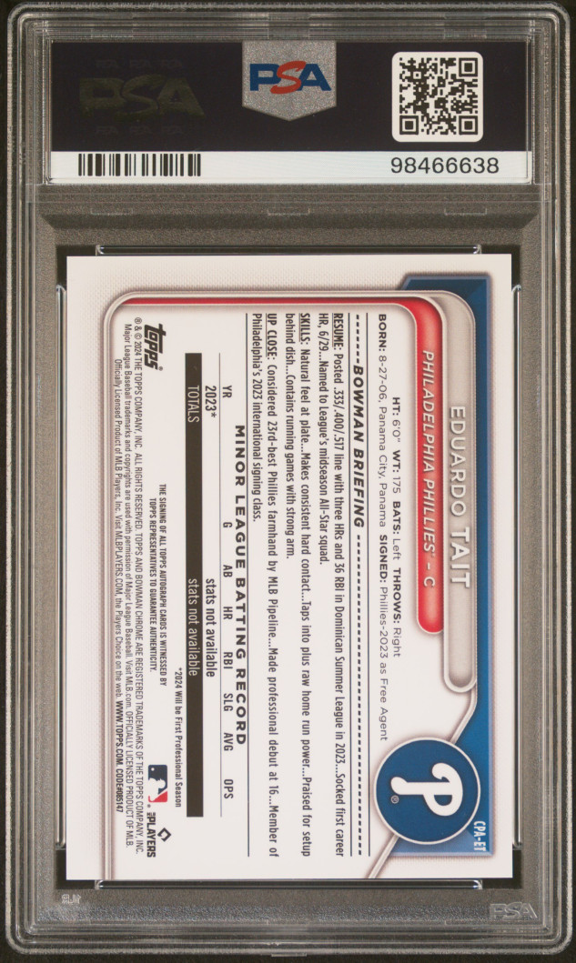 🔥 EDUARDO TAIT 1st Bowman Chrome Prospect Auto | PSA 10 GEM MINT
