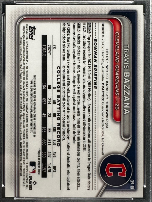 2024 Bowman Chrome Travis Bazzana Auto /199 Aqua