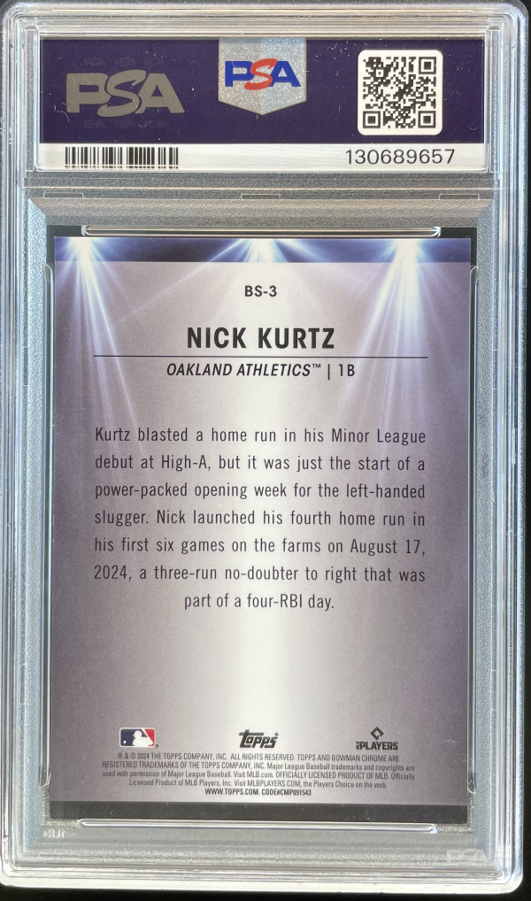 Thanks for your looking at my listing 2024 Bowman Draft Bowman Spotlights Nick Kurtz PSA 9. Let me know if you have any questions!