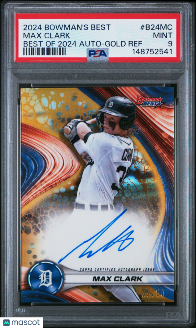 You are purchasing a 2024 Bowman's Best Max Clark #B24MC Gold Ref Auto /50 PSA 9. Thank you for looking.