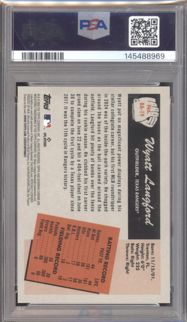 You are purchasing a 2024 Bowman's Best Baseball Wyatt Langford #BA-19 1955 Anime RC PSA 10. You will receive the exact item in the photographs. Thank you for looking.