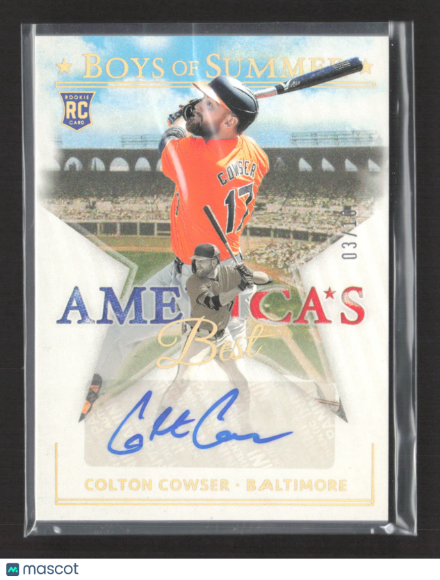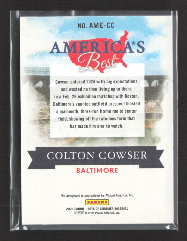 You are purchasing a 2024 Panini Boys of Summer America's Best Colton Cowser #AME-CC RC 03/10. You will receive the exact item in the photographs. Thank you for looking.