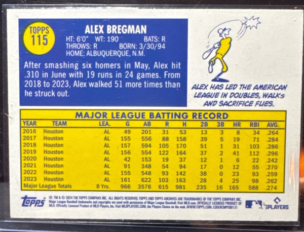 2024 Topps Archives - 1970 Topps Alex Bregman #115 Yellow Foilboard