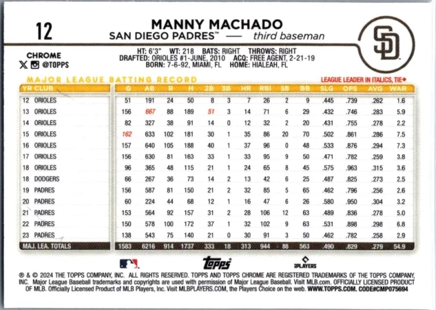 In 2024 Manny Machado played for the San Diego Padres.