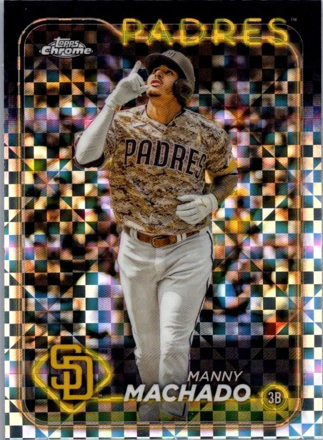 This is a nice example of a 2024 Topps Chrome #12 Manny Machado X-Fractors