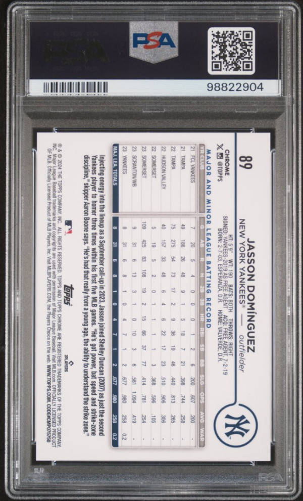 Thanks for your looking at my listing 2024 Topps Chrome Jasson Dominguez Variation PSA 9. Let me know if you have any questions!