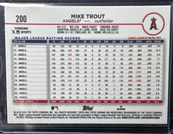 2024 Topps Chrome MIKE TROUT Raywave Refractor #200 Card LA ANGELS