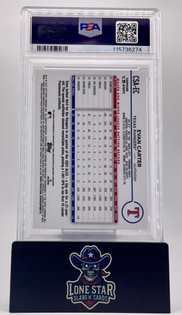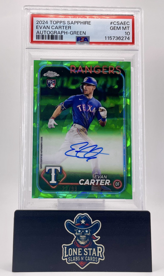 2024 Topps Chrome Sapphire Evan Carter Chrome Sapphire Autograph – Green PSA 10 (/99)