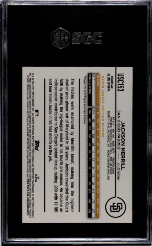 2024 Topps Chrome Update Jackson Merrill SGC 9.5