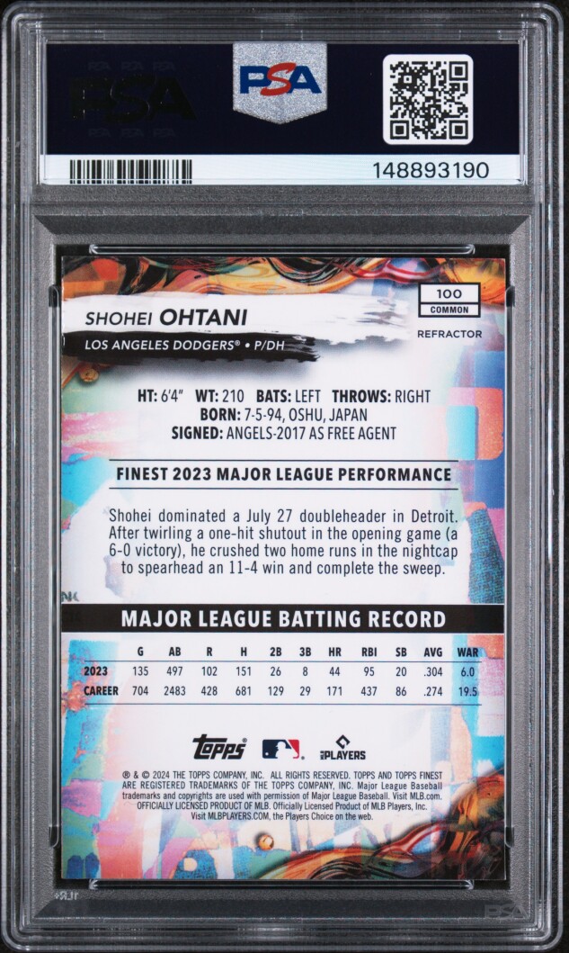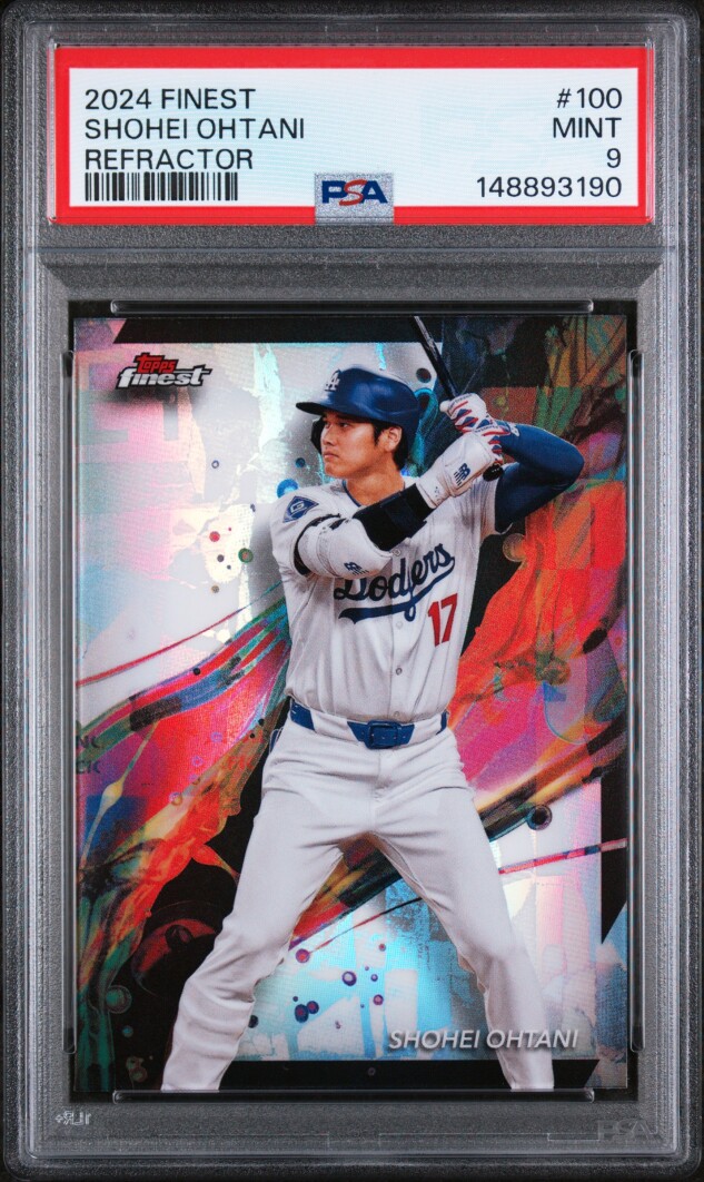 2024 Topps Finest SHOHEI OHTANI Rare REFRACTOR PARALLEL #100 - GRADED PSA 9 MINT - Los Angeles Dodgers