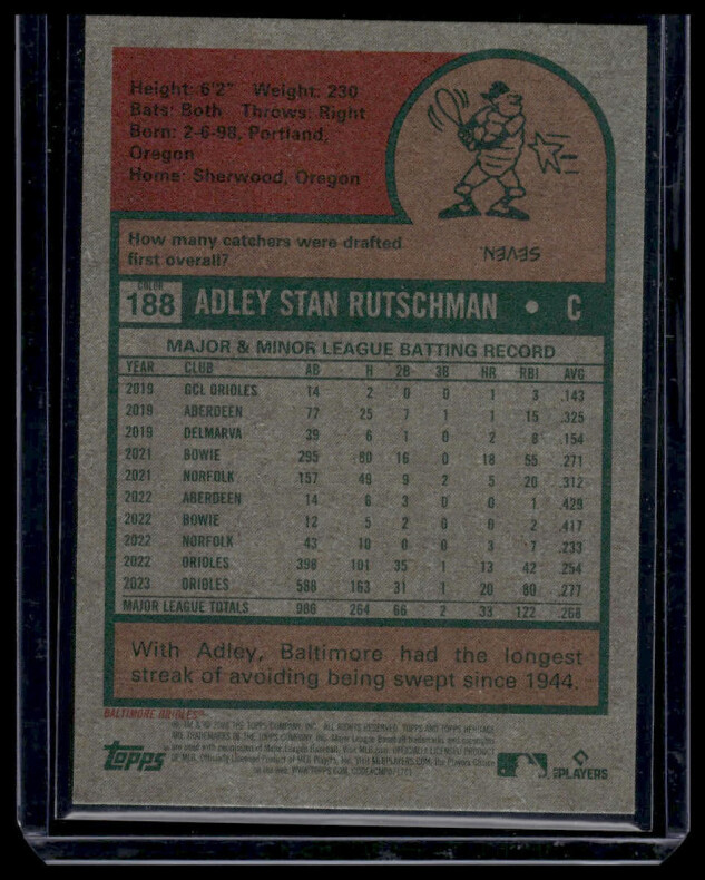 You are purchasing a 2024 Topps Heritage Adley Rutschman #188. You will receive the exact item in the photographs. Thank you for looking.