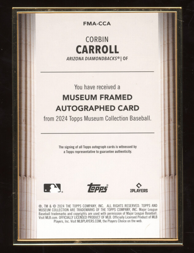 You are purchasing a 2024 Topps Museum Collection Corbin Carroll #FMA-CCA Framed Autographs 06/10. You will receive the exact item in the photographs. Thank you for looking.