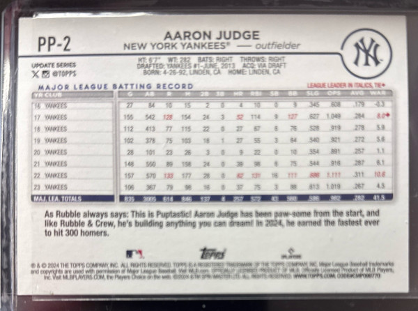 2024 Topps Update Aaron Judge Paw Patrol Rubble Crew #PP-2 New York Yankees