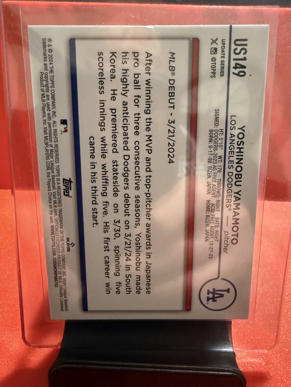 2024 Topps Update Series - Rookie Debut - Yoshinobu Yamamoto #US149 Jack O Lantern