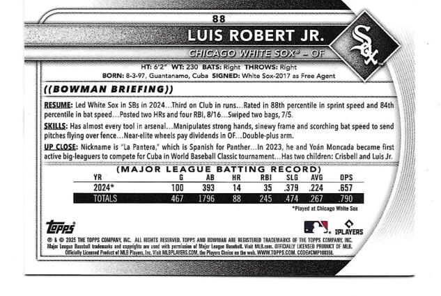 2025 BOWMAN #88 LUIS ROBERT JR.