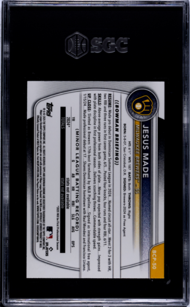 2025 Bowman #BCP-50 Jesus Made Chrome Prospect Green Shimmer Ref. SGC 10