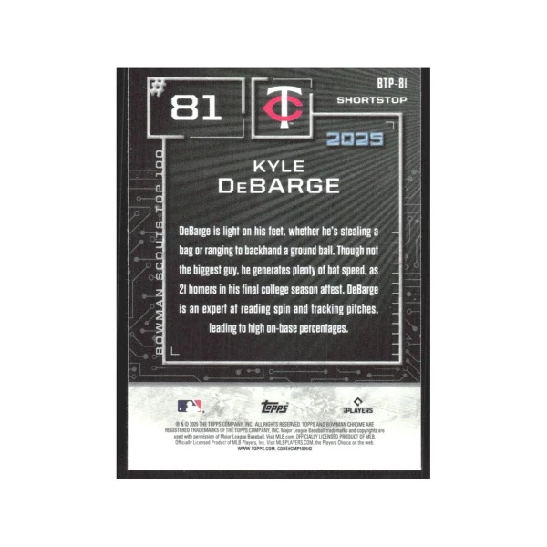 2025 Bowman - Bowman Scouts Top 100 Chrome Kyle DeBarge #BTP-81 (RC)