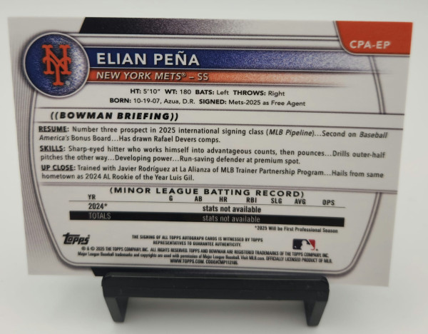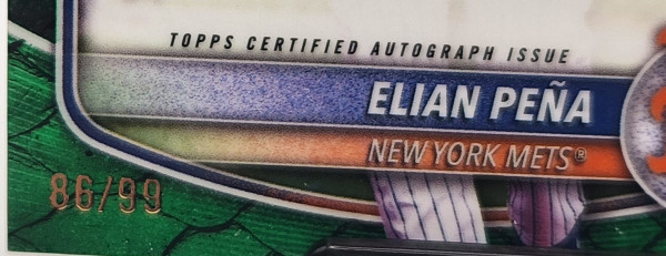 2025 Bowman Chrome 1st - Elian Peña #CPA-EP Green Reptile Auto /99 NY Mets