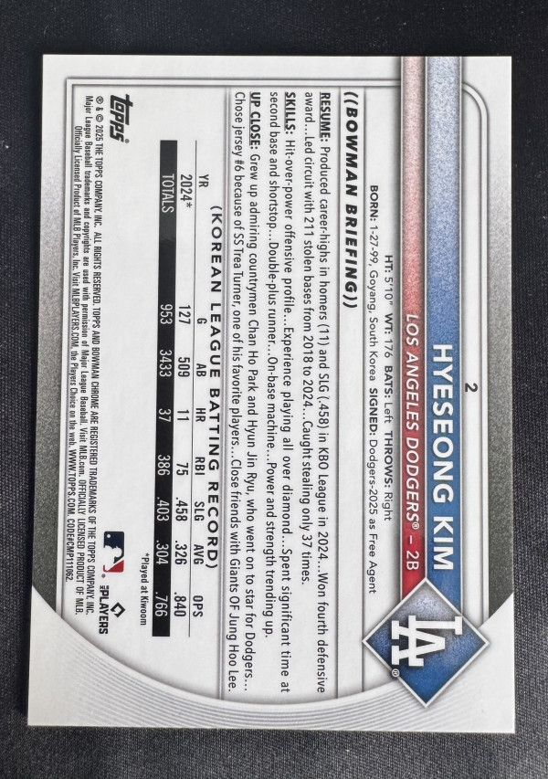 2025 BOWMAN CHROME 2 HYESEONG KIM IMAGE VARIATION