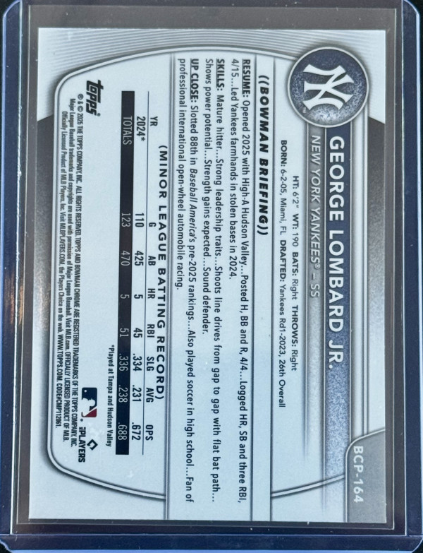 2025 Bowman Chrome George Lombard Jr. #BCP-164 Laser Refractor