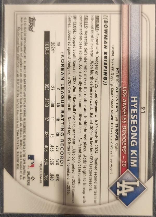 2025 Bowman Chrome Hyeseong Kim Mojo