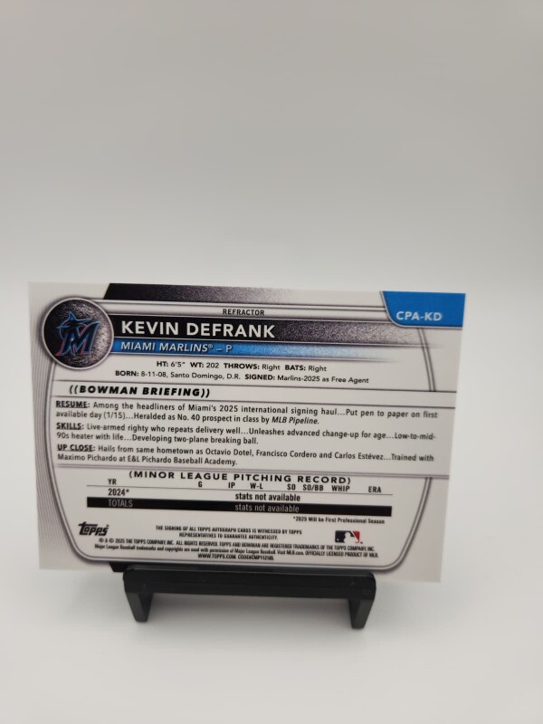 Kevin DeFrank is one of the most exciting young arms in baseball โ and this is his 1st Bowman Chrome autograph, the most important rookie card a prospect can have.