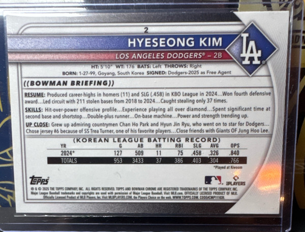 2025 Bowman Chrome MOJO Refractor #2 HYESEONG KIM (RC) - Dodgers