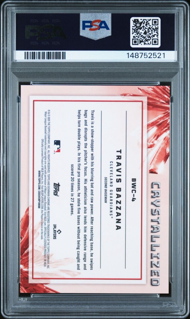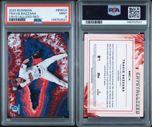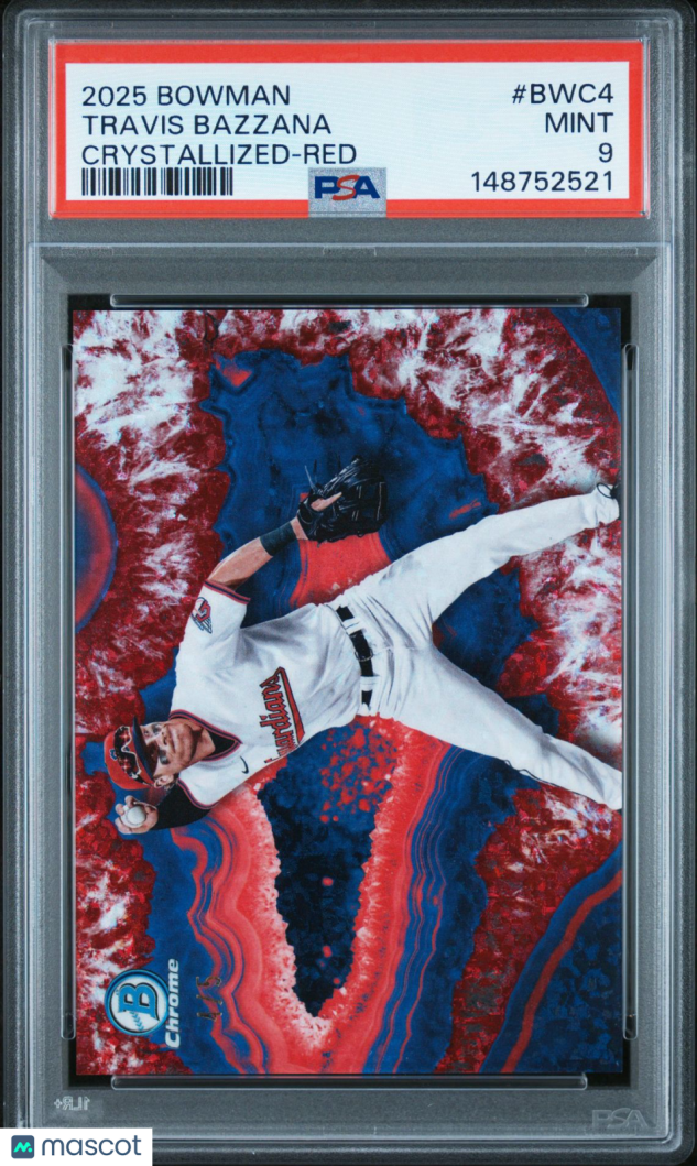You are purchasing a 2025 Bowman Crystallized Travis Bazzana #BWC4 Red SSP /5 PSA 9. Thank you for looking.