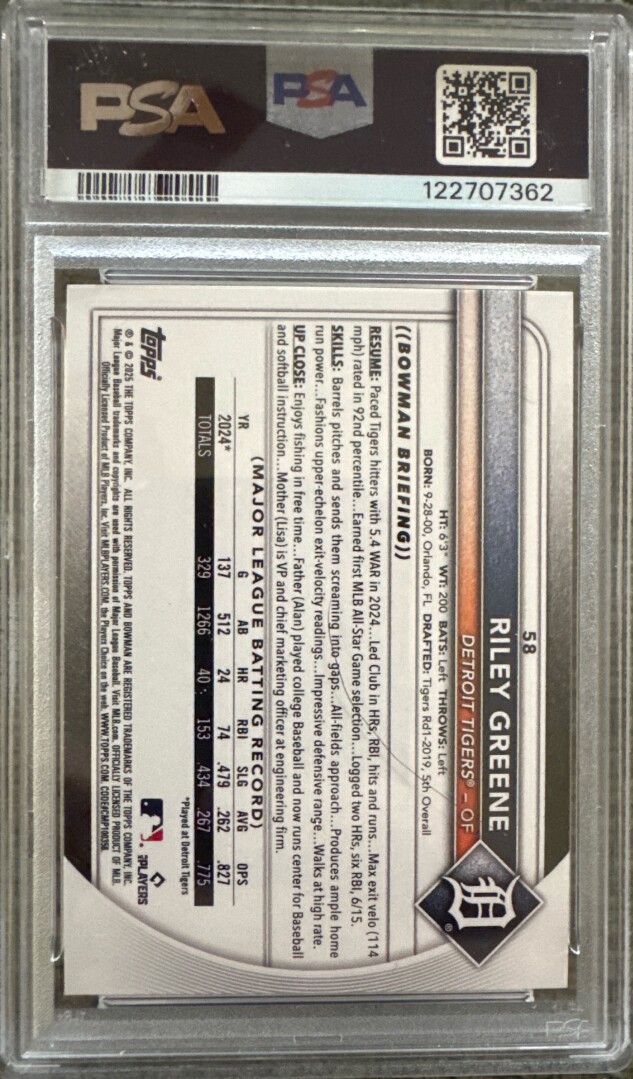2025 Bowman Riley Green Retro Logo Foil Pattern PSA 10