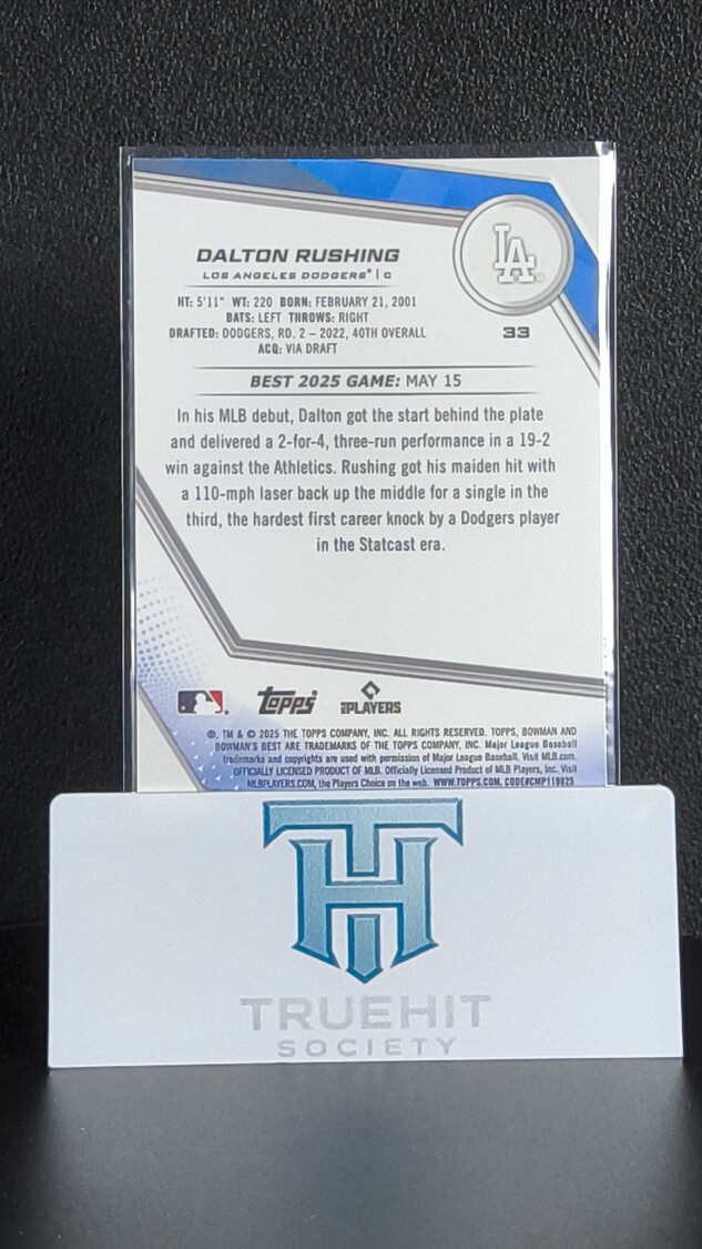 You are purchasing a 2025 Bowman's Best Dalton Rushing #33 RC. You will receive the exact item in the photographs. Thank you for looking.