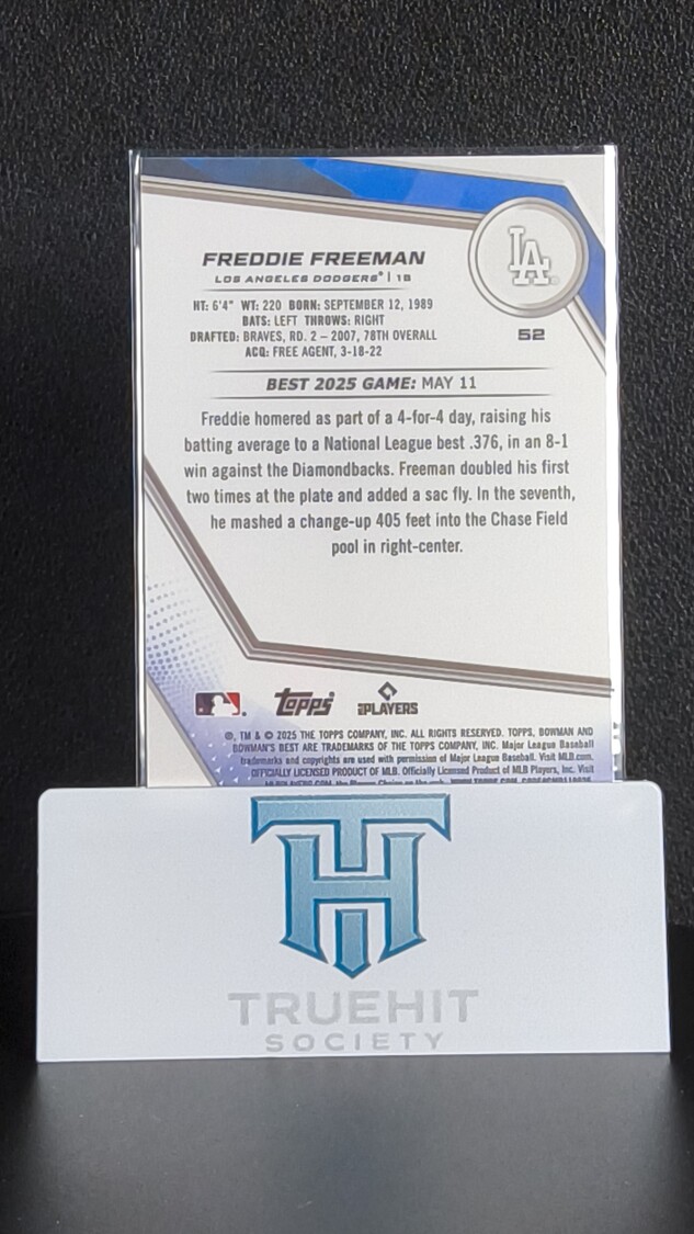 You are purchasing a 2025 Bowman's Best Freddie Freeman #52. You will receive the exact item in the photographs. Thank you for looking.