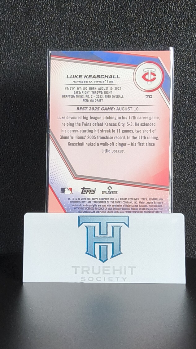 You are purchasing a 2025 Bowman's Best Luke Keaschall #70 RC. You will receive the exact item in the photographs. Thank you for looking.