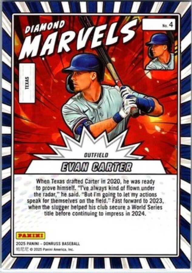 2025 Donruss #4 Evan Carter Diamond Marvels Green Laser
