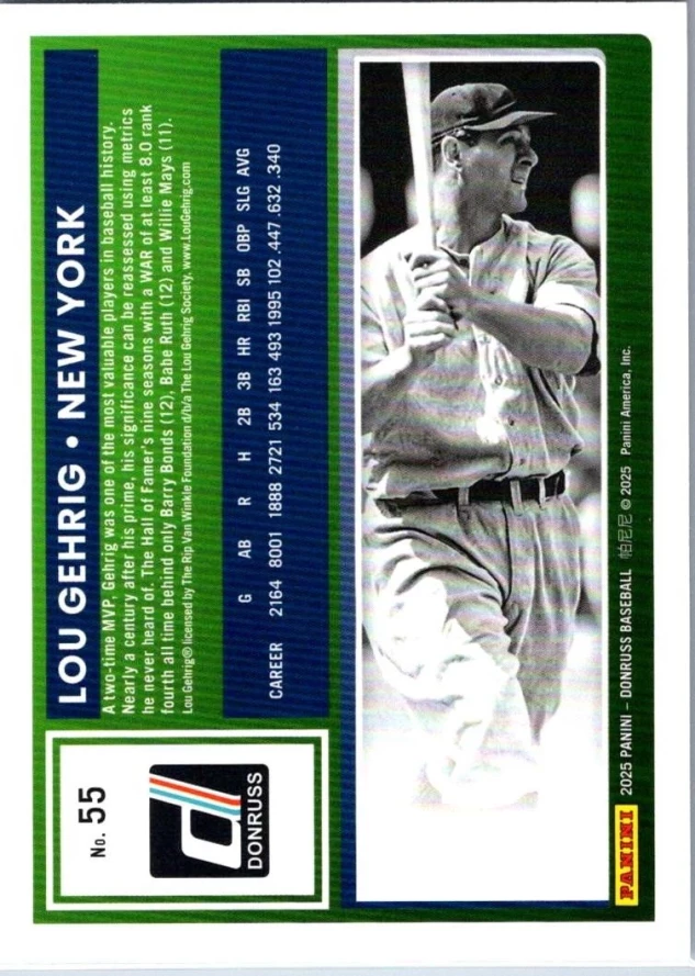 This is a nice example of a 2025 Donruss #55 Lou Gehrig Blue
