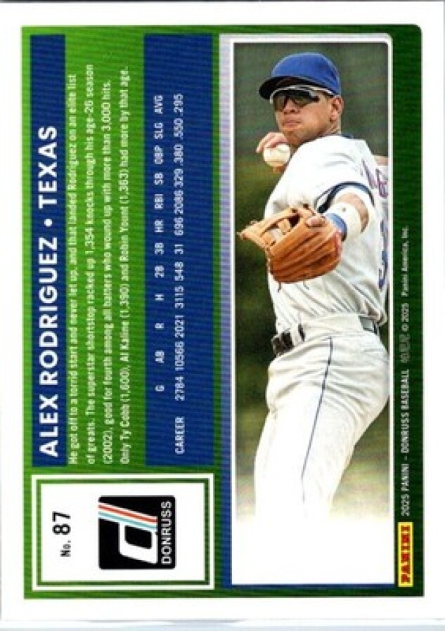 This is a nice example of a 2025 Donruss #87 Alex Rodriguez